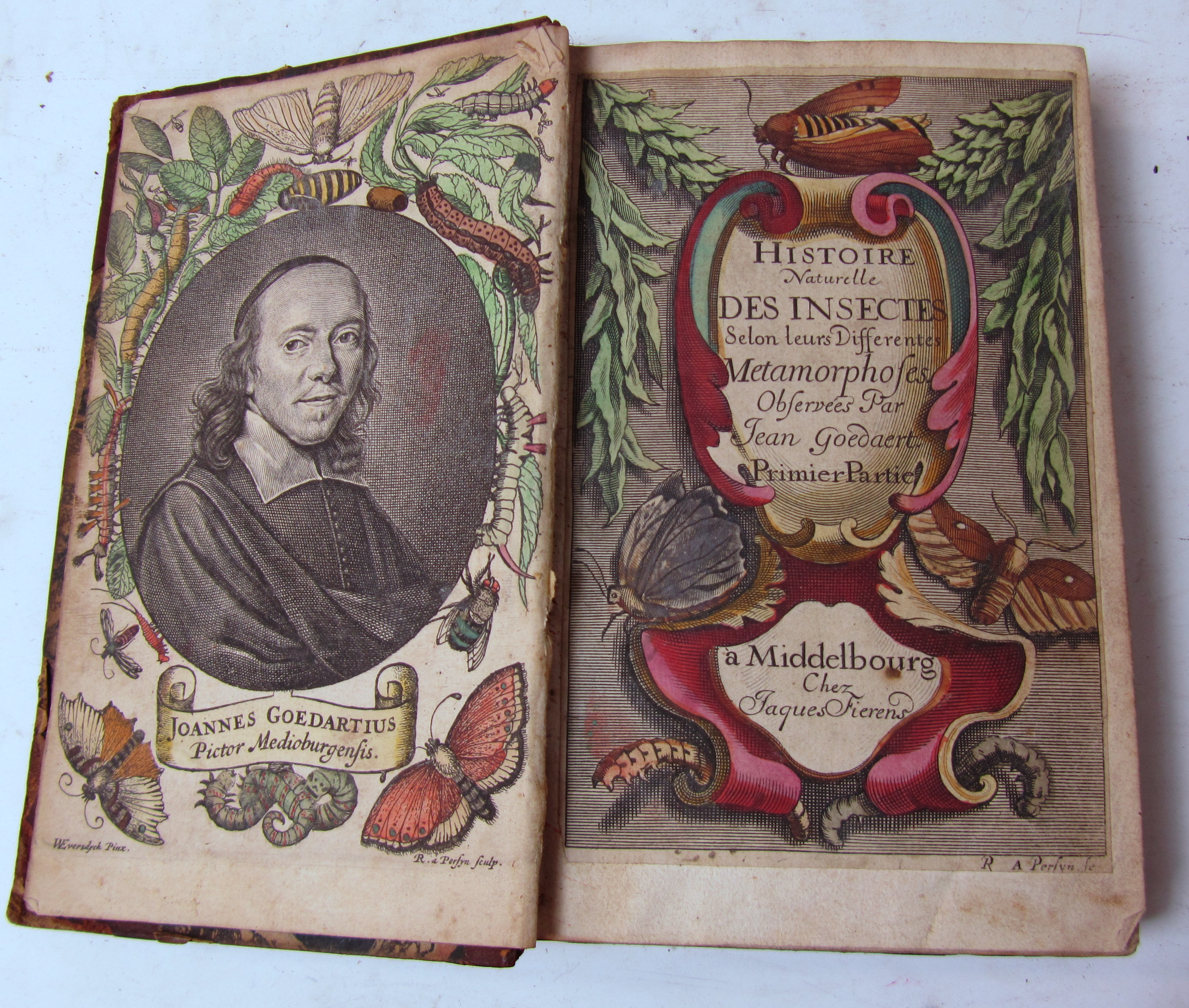 Histoire naturelle des insectes selons leurs differentes metamorphoses. Middelbourg: Jaques Fierens, [no date]. First part only, 12mo, hand-coloured engraved title, frontispiece, 42 hand-coloured engraved plates, frontispice border shaved, title cut down and mounted, last plate loose, one plate with marginal tear, early nineteenth century half calf, some discolouration of text, worn, upper cover almost detached