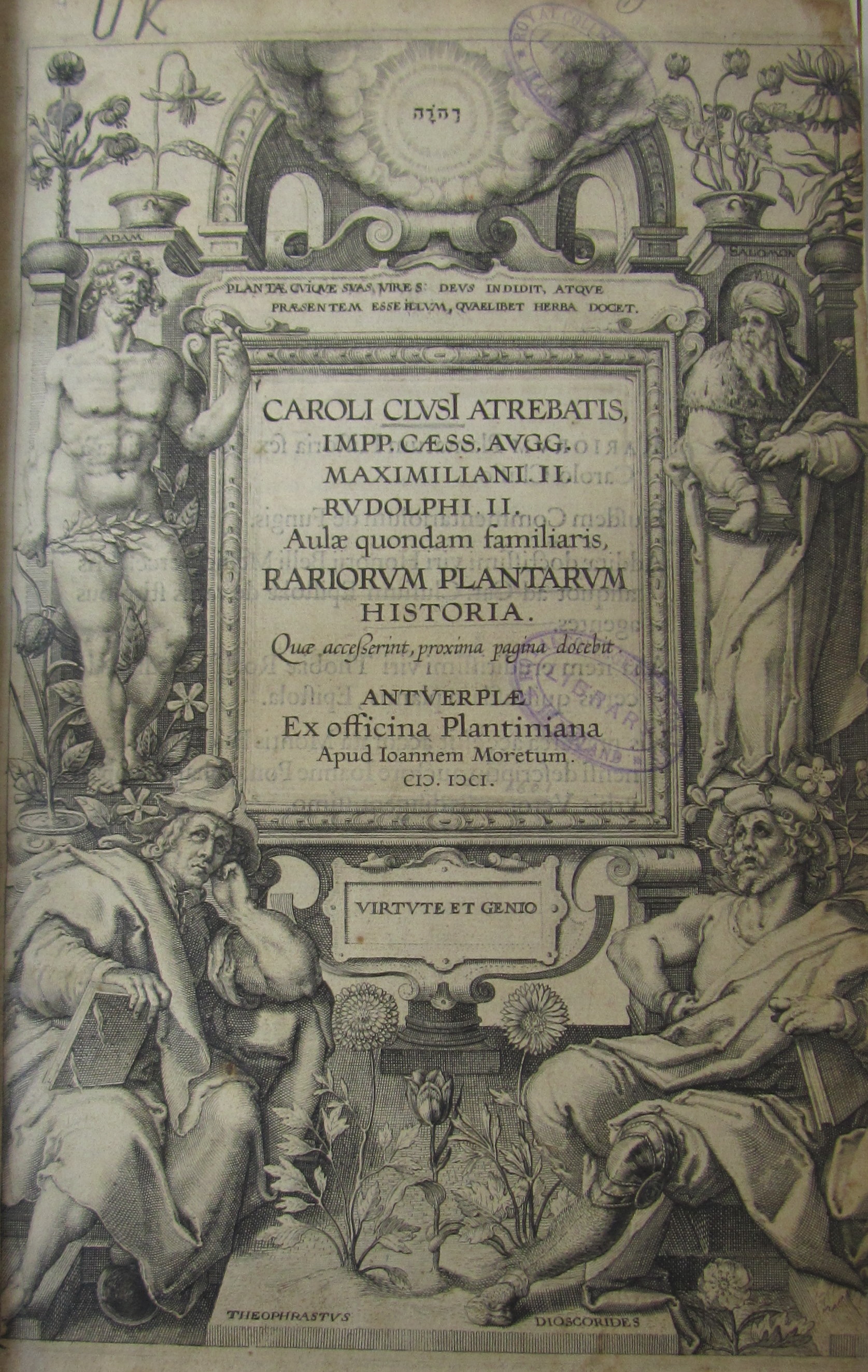 Rariorum plantarum historia. Antwerp: J. Moretum, 1601. Folio, [14] 364 cccxlviii [12], engraved title, portrait, woodcuts in text, library stamps, contemporary calf, rebacked and repaired, replacement endpapers, interior clean