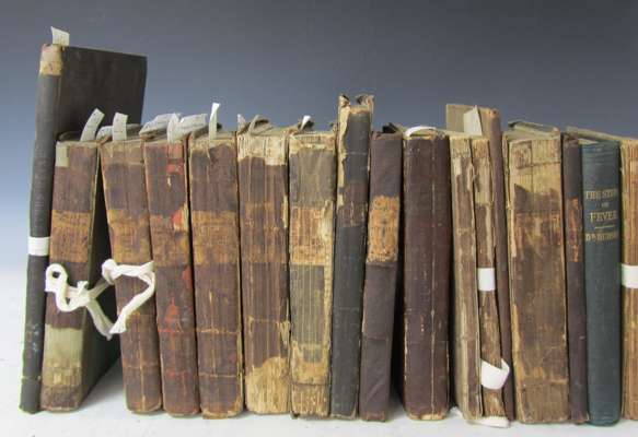 A compendium of anatomy. Edinburgh, 1819. 4 volumes, 8vo, engraved plates, original boards, spotted, worn, one board detached; Blumenbach, J.F. A manual of comparative anatomy. London, 1827. Second edition, 8vo, engraved plates, original boards, slightly spotted, upper cover detached; Beaupré, M. A treatise on the effects and properties of cold. Edinburgh, 1826. 8vo, original boards, worn; Baillie, Matthew Lectures and observations on medicine. London, 1825. 8vo, original boards, slightly spotted, upper board detached; Bacot, John A treatise on syphilis. London, 1829. First edition, 8vo, cloth-backed boards, upper hinge broken; Carmichael, R. An essay on the effects of carbonate... upon cancer. Dublin, 1809. Second edition, 8vo, original boards, slightly dampstained, rubbed; Mayo, H. Anatomical and physiological commentaries. London, 1822-23. Numbers 1-2 only, folding lithographed plates, original wrappers, one wrapper detached; Simon, J. A physiological essay on the thymus gland. London, 1845. 4to, original clothWright, Samuel Pathological researches on death from suffocation and from syncope. London, 1850. 4to, 3 lithographed plates, original cloth-backed boards, some spotting, slightly soiled; Abernethy, John Physiological lectures. 1825. 8vo, original boards, upper board detached; Brodie, B.C. Lectures illustrative of certain local nervous affections. 1837. 8vo, original cloth-backed boards, joints split; Hudson, A. Lectures on the study of fever. Dublin, 1867. 8vo, original cloth; Goodsir, J. Anatomical and pathological observations. Edinburgh, 1845. 8vo, presentation copy from the author, plates, original wrappers, wrappers detached; and 70 other 19th century English medical books, some rebound in cloth, some in poor condition (87)