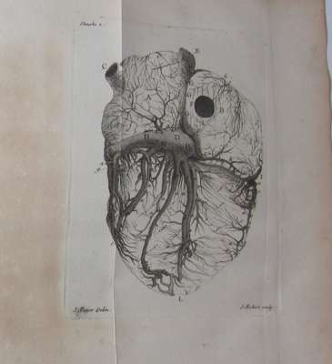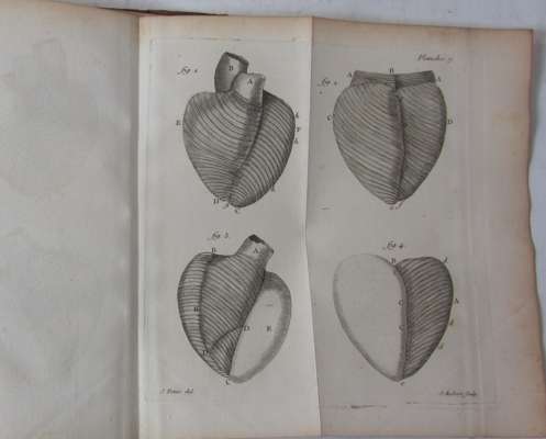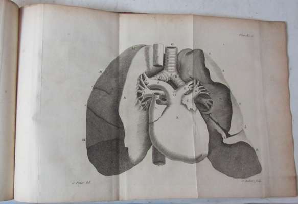 Traité de la structure du coeur. Paris: Briasson, 1749. First edition, 2 volumes, 4to, 17 folding engraved plates, errata leaf in volume 2, contemporary calf, some spotting, lacking portrait, rubbed, library stamp to titles, plates clean