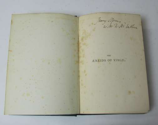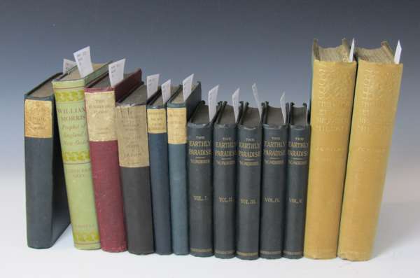 The aeneids of Virgil. London: Ellis and White, 1876. 8vo, presentation inscription on half title "Jenny Morris with W M's best love", original cloth, paper label [rubbed], foxing to early leaves and page edges; Morris, William The earthly paradise, a poem. London: Reeves & Turner, 1886. 8vo, 5 volumes, original cloth gilt, gilt stamp of the Faculty of Procurators in Glasgow to boards; and 7 others (13)