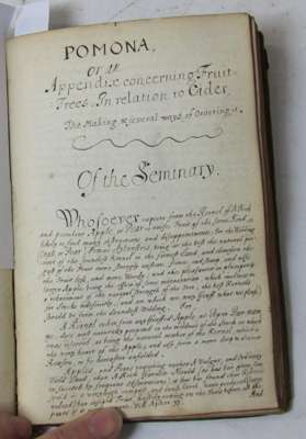 Manuscript entitled Rules for the raising and ordering all sorts of forest trees... together with Pomona or an appendix concerning fruit trees in relation to cider. [London], 1684. 8vo, copied from John Evelyn's Sylva?, contemporary calf, worn, lacking backstrip, some waterstaining to early sections