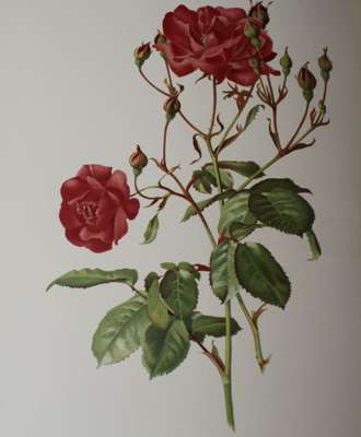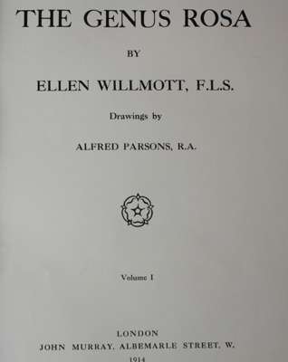The genus rosa. London: John Murray, 1914. First edition, 4to, 2 volumes, 132 chromolithographed plates, numerous full page illustrations, contemporary green morocco gilt by Bumpus, covers with triple gilt fillet borders and red and green rose and leaf corner pieces, spines tooled gilt in compartments with the same motifs, a.e.g., one or two plates adhering to the adjacent text leaf, text leaf p.467 repaired with minor loss, volume 2 upper joint cracking, spines a bit faded