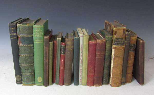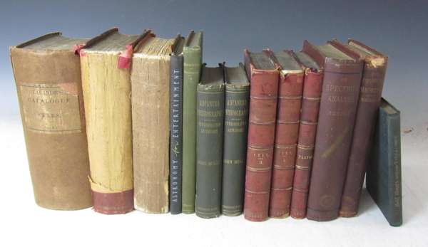 Ferguson's lectures on the select subjects. Edinburgh, 1806. Second edition, 8vo, 3 volumes, 50 engraved plates, contemporary half calf gilt, worn, ex-library stamps of the Astronomical Society; Roscoe, Sir Henry E. Spectrum analysis. London, 1885. 8vo, double page frontispiece, two folding plates, original decorative cloth gilt, ex-library copy; Walker, Edward Terrestrial and cosmical magnetism. Cambridge, 1866. 8vo, 10 folding plates, original cloth gilt, rubbed, head of backstrip chipped; Proctor, Richard Half-hours with the telescope. London, [no date]. 8vo, folding frontispiece, plates, original cloth gilt, foxing, ex-library; Ball, Sir Robert In the high heavens. London, 1907. Cheap edition, 8vo, original green cloth gilt; Ellery, Robert Results of astronomical observations made at the Melbourne Observatory... Melbourne, 1884. 8vo, original cloth, ex-library; Herschel, Sir John Essays from the Edinburgh and Quarterly reviews... London, 1857. 8vo, original cloth gilt, worn, ex-library; and 46 others on astronomy (55)
