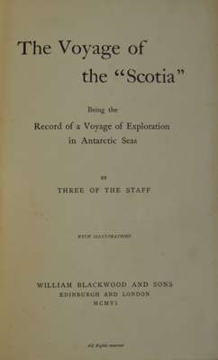 The voyage of the "Scotia". Edinburgh & London: William Blackwood and Sons, 1906. 8vo, frontispiece, 3 maps [2 coloured], plates, original decorative cloth, some rubbing to backstrip, interior clean