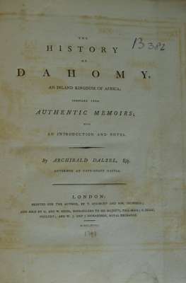 The history of Dahomy, an inland kingdom of Africa. London: printed for the author, 1793. 4to, folding map frontispiece, 6 plates, subscriber's list, original boards, rebacked, corners worn, class pen mark to title, some offsetting to title from frontispiece, some light spotting