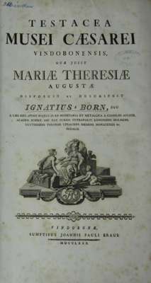 Testacea musei caesarei. Vienna: J.P. Kraus, 1780. Folio, 18 hand-coloured plates, library stamp to title, all plates wih blindstamp, spotted, inscription at head of title, lower corner torn from title, slight marginal discolouration to page edges and dust-soiling, lacks both boards, spine worn