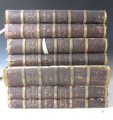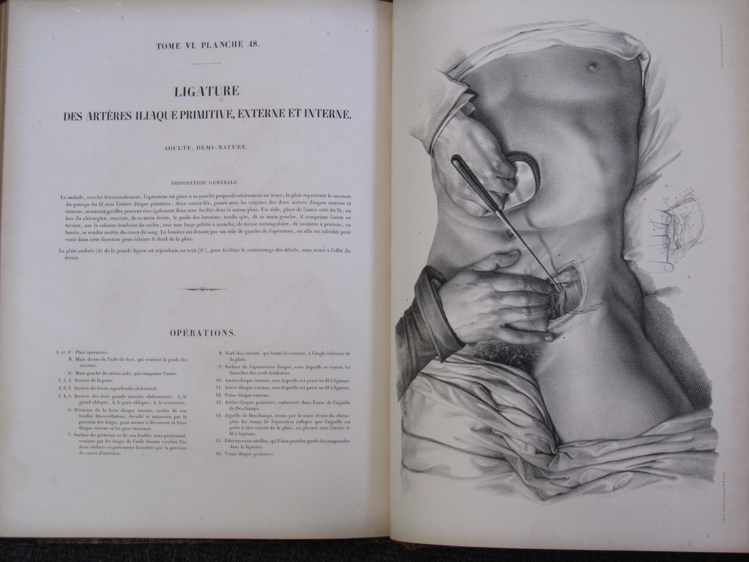 Traité complet de l'anatomie de l'homme. Paris: C.A. Delaunay, 1832 [lithographed title 1831] -1844. Volumes 1-7 (of 8), numerous lithographed plates, some folding, contemporary maroon half morocco, a few plates torn with slight loss, some spotting, volume 3 and 5 worn with covers detached