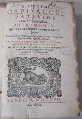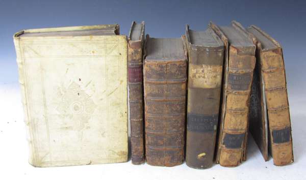 Pharmacopoea regia Galenica [regia chymyica; operum tomus tertius]. Geneva: J.L. Dufour, 1684. 3 volumes in one, additional engraved title, engraved portrait, 8 engraved plates, apparently lacking plate 2 of volume 3, contemporary Dutch blindstamped vellum, some spotting; Capidovacca, Giralamo Opera omnia. Venice: Sessas, 1617. Folio, title printed in red and black and with woodcut vignette, title loose and slightly frayed and browned in fore-margin, contemporary blind-stamped calf over wooden boards, lacking clasps, spine defective; Castelli, Bartolomeo Lexicon medicum. Nuremberg: J.D. Tauber, 1682. 4to, engraved title vignette, contemporary half calf, library stamp on title, spotted, worn, covers detached; Citois, François Opuscula medica. Paris: S. Cramoisy, 1639. 4to, engraved title vignette, eighteenth century half calf, several library stamps, worn, one cover detached; Graniti, Niccolo Dell'antica e moderna medicina teorica e pratica. Venice: D. Occhi, 1739. 2 volumes in one, 4to, contemporary vellum; Menjot, Antoine Febrium malignarum historia et curatio. Paris: S. Cramoisy, & S. Mabre-Cramoisy, 1665-74. 2 volumes, 4to, presentation copy from the author, inscribed on half-title "Pour Monsieur Henry, docteur en medicine, Menjot", contemporary calf, slight dampstaining at beginning of volume 1, worn, covers detached; Chalmeteus, Antonius Enchiridion chirurgicum. Basle: J.J. Genath, 1620. 8vo, ownership inscription of Sir Thomas Molyneaux on p. 9, errata leaf at end, contemporary calf, spotted, upper cover detached; Musschenbroek, Peter van Compendium physicae experimentalis. Leiden: S. & J. Luchtmans, 1762. 8vo, 14 folding engraved plates, contemporary half calf, slight dampstaining, some spotting, worn; Castelli, Bartolomeo Lexicon medicum Graeco-Latinum. Leipzig, 1713. 4to, contemporary vellum, somewhat spotted, split at head of joints; Boerhaave, Hermann Methodus studii medici. Amsterdam, 1751. 2 volumes in one, 4to, titles printed in red and black, engraved frontispiece and 3 folding plates, half calf, uncut, some spotting, binding worn; Maroldus, Ortulphus Practica medica. Frankfurt: J. Beyer, 1650. 4to, title printed in red and black, contemporary calf, some spotting, rubbed, cover detached; Craanen, Theodorus Tractatus physico-medicus de homine. Leiden: Pieter van der Aa, 1689. 4to, title printed in red and black, 36 (of 38) folding engraved plates (lacks plates 37 & 38), old calf, textblock split, worn, covers detached; Hoffmann, Friedrich Medicinae rationalis systematicae. Venice: Ballioni, 1730-39. 5 volumes in 8, engraved portrait frontispiece, contemporary vellum, some spotting and browning; Hoffmann, Friedrich Consultationum et responsorum medicinalium. Halle, 1734. 2 volumes, 4to, engraved portrait, titles printed in red and black, contemporary vellum, spotted, bindings dust-soiled; Idem Observationum physico-chymicarum selectiorum. Halle, 1736. 4to, title printed in red and black, contemporary vellum, some browning, binding dust-soiled and slightly warped; Rega, Henri Joseph Tractatus duo de urinis. Frankfurth & Leipzig, 1761. 12mo, contemporary calf, some spotting, cover detached; and others, 17th and 18th century (quantity)