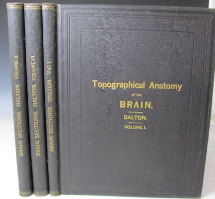 Topographical anatomy of the brain. Philadelphia: Lea Brothers, 1885. 3 volumes, 4to, 48 plates each with a duplicate outline plate, original cloth, some library stamps