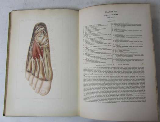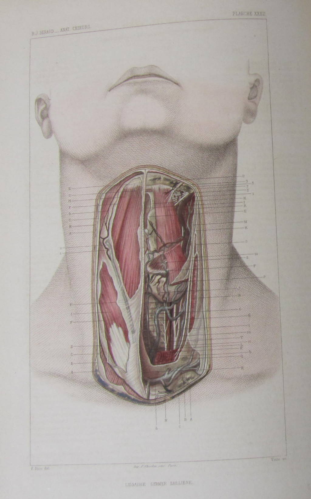 including Beraud, B.J. Atlas complet d'anatomie chirurgicale. Paris, 1862-65. 3 volumes in 5 [part 2 being in 3 fasicules], 4to, 108 coloured plates, original cloth-backed boards and original slipcases, slightly spotted, slipcases worn; Cloquet, Jules Anatomie des vers intestinaux. Paris, 1824. 4to, 8 folding plates; Idem Recherches anatomiques sur les hernies de l'abdomen. Paris, 1817. 4to, 4 engraved plates; Idem Recherches sur les causes et l'anatomie des hernies abdominales. Paris, 1819. 4to, 10 lithographed plates; Idem Mémoire sur l'existence et la disposition des vois lacrymales dans les serpens. Paris, 1821. 4to, 1 plate; contemporary half calf, some spotting; Académie Royale de Chirurgie Mémoires de l'Académie Royale de Chirurgie. Paris, 1819. 5 volumes, 8vo, folding plates, contemporary boards, rubbed; Idem Mémoires sur les sujets proposés pour les prix. Paris, 1819. 6 volumes, 8vo, contemporary boards, rubbed; and a large quantity, all nineteenth century