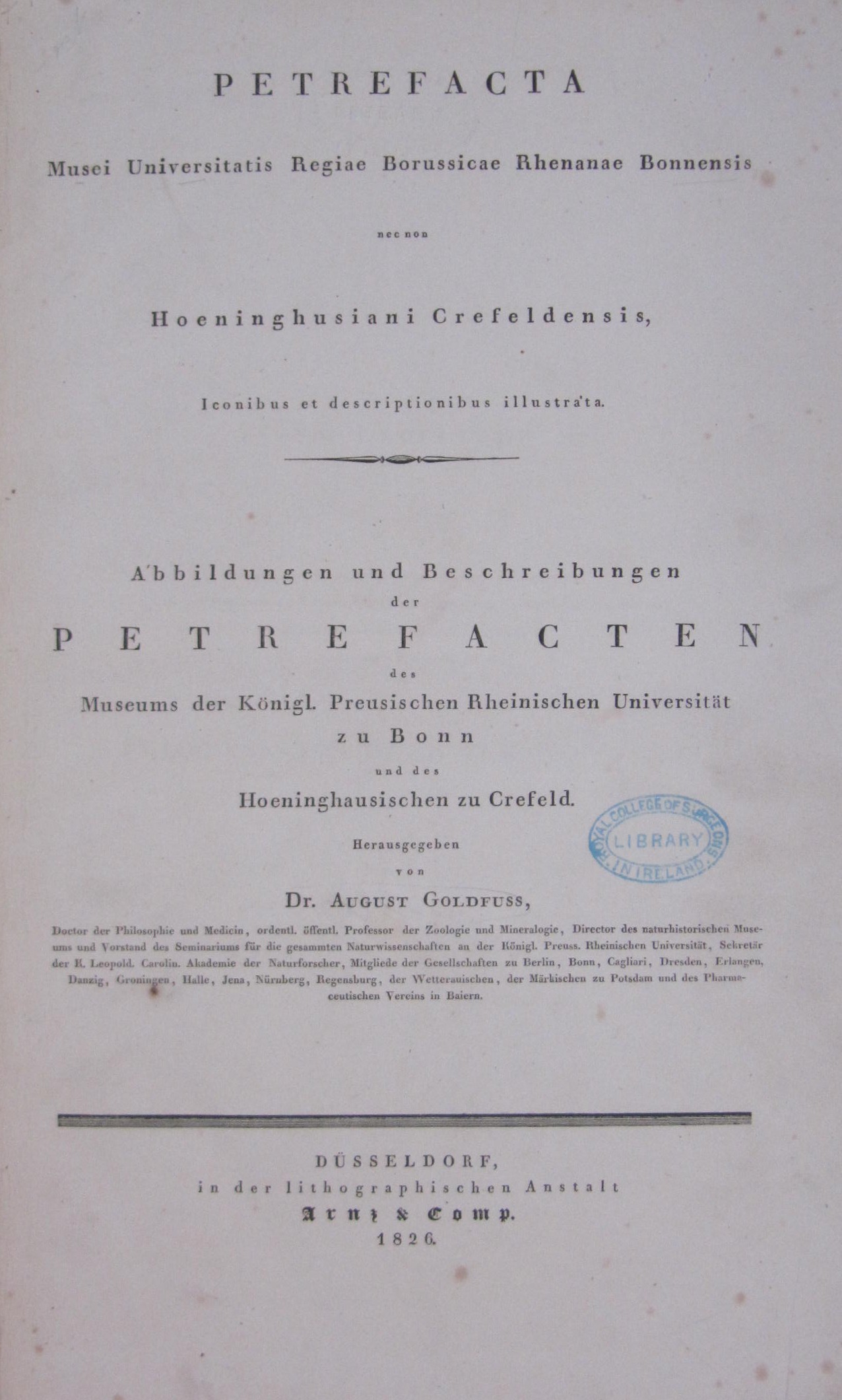 Petrefacta.... Dusseldorf: Arnz & Comp., 1826-[44]. Folio, 3 volumes, frontispiece, 219 plates, folding table, contemporary half calf gilt, rubbed, section of backstrips loose, library stamps to text and some plates, some neat repairs to plates, dustmarked (3)
