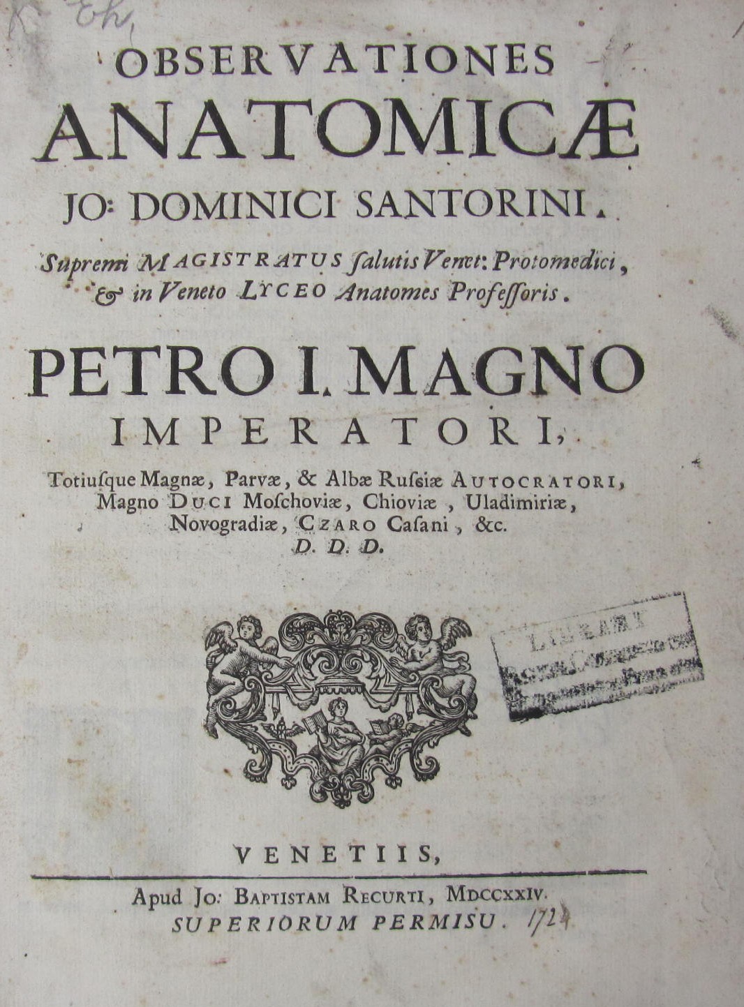 Italy, medicine -- Italian editions -- Santorini, Giovanni Domenico