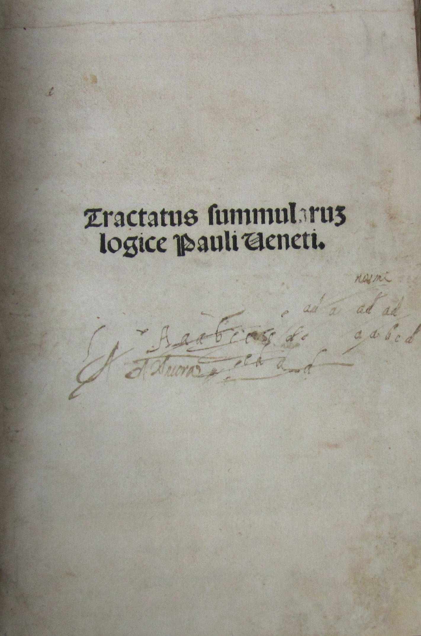 Note: Probably produced as a textbook for use in the University of Padua, where Paolo Veneto had taught in the early fifteenth century. Rare. Only one copy traced on KVK.
