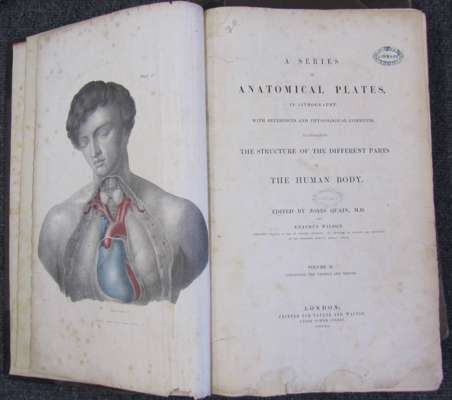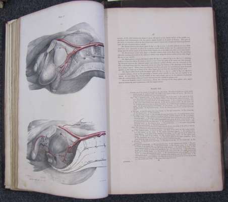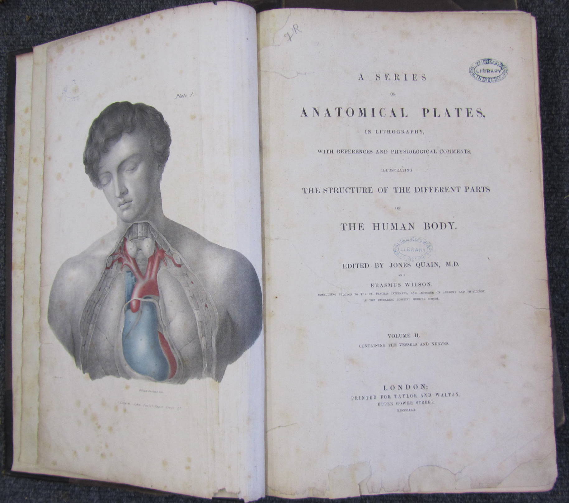 A series of anatomical plates... London, 1842. Folio, 2 volumes [volume I bones and ligaments, volume II vessels and nerves], plates, later half morocco gilt, worn, staining and foxing throughout; and 3 other volumes edited by Quain and Wilson (5)