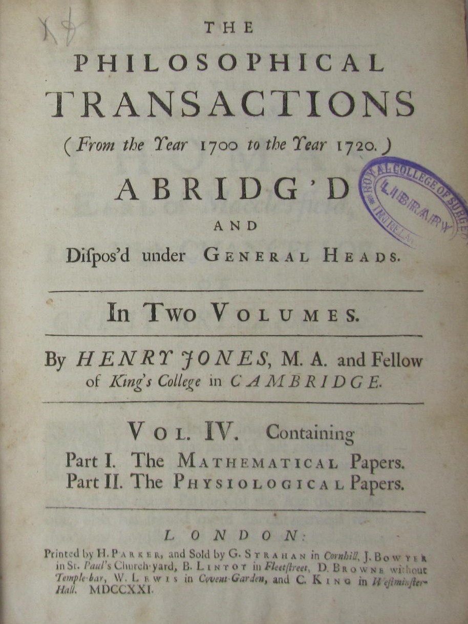 Royal Society of London. Philosophical Transactions, abridged.