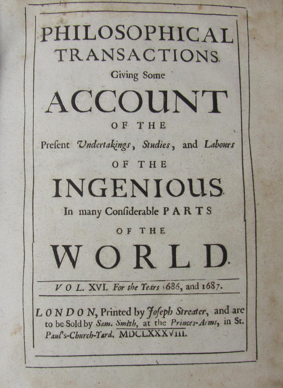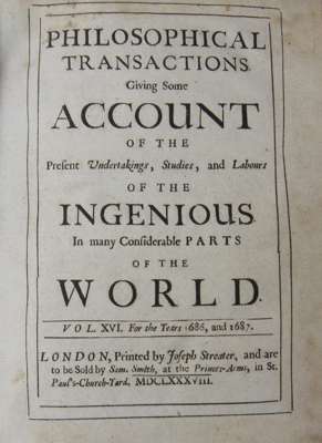 Royal Society of London. Philosophical Transactions - VOLUME 1 LACKING c. 12 leaves