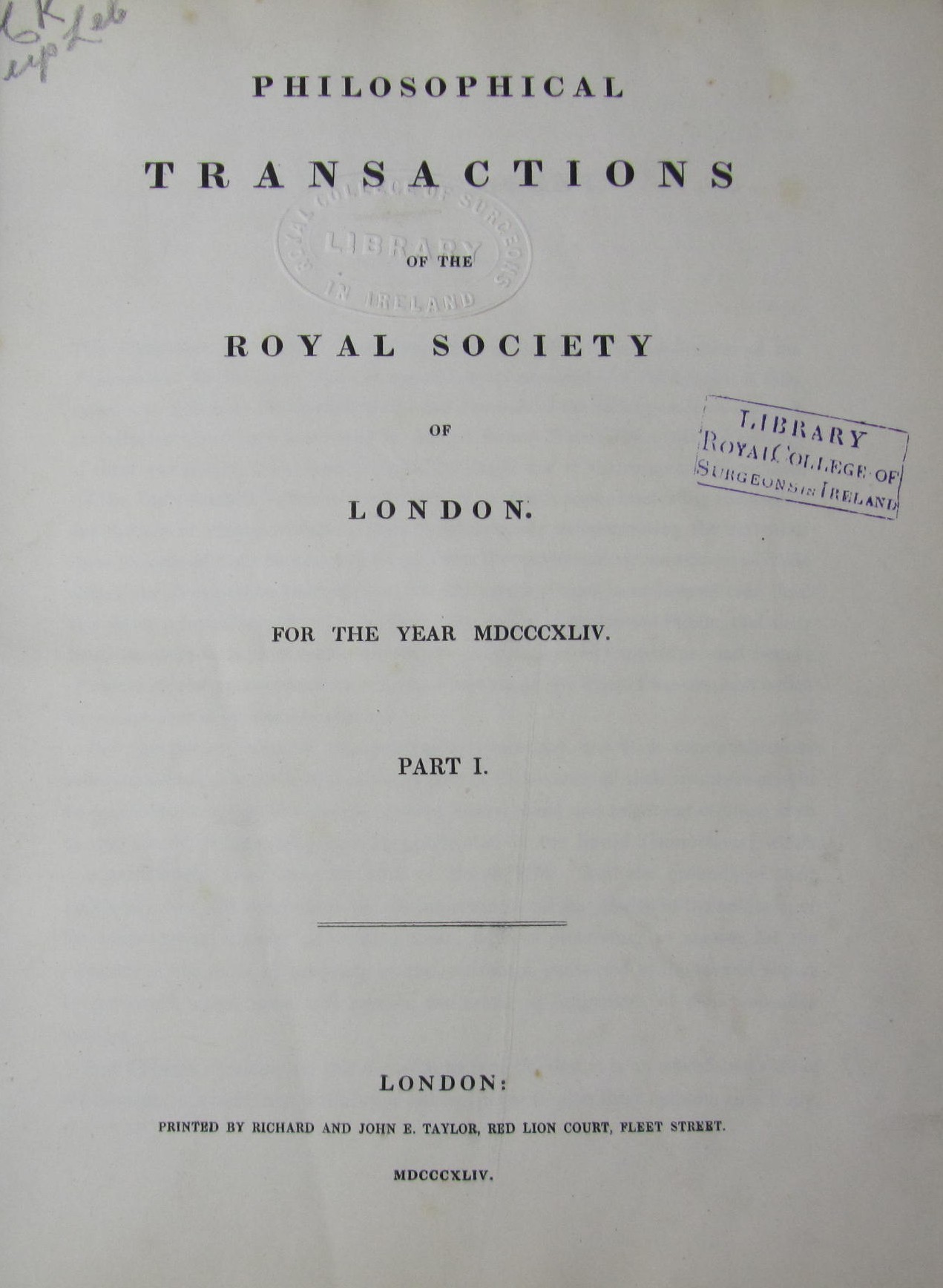 Royal Society of London. Philosophical Transactions, 1800-1922