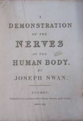 A demonstration of the nerves of the human body. London: Longman, Rees, Orme, 1830. Folio, 50 plates [25 plates in 2 states], later 19th century half morocco gilt, rubbed, title page laid down on linen, repairs to edges of title pages, some guards torn, dustmarking, library stamps to early leaves, foxing to endpapers