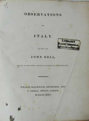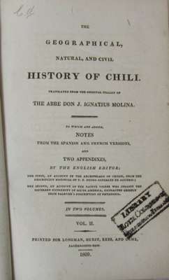 Observations on Italy. Edinburgh, 1825. First edition, 8vo, 9 engraved plates, contemporary half calf, worn, boards loose, lacking backstrip, some light foxing, library stamps; Molina, Juan Ignacio de The geographical, natural and civil history of Chili. London, 1809. 8vo, 2 volumes, contemporary half calf, worn, boards loose, library stamps; Malcolm, Sir John A memoir of central India including Malwa... London, 1832. Third edition, 8vo, 2 volumes, folding map frontispiece to each volume [volume 1 hand coloured], contemporary half calf gilt, worn and faded, some foxing, library stamps; Malte-Brun, Conrad Universal geography... Edinburgh, 1822-33. 8vo, 9 [of 10] volumes, folding table, 3 folding plates, contemporary half calf, worn, several volumes lacking backstrips, boards loose, foxing, library stamps (14)