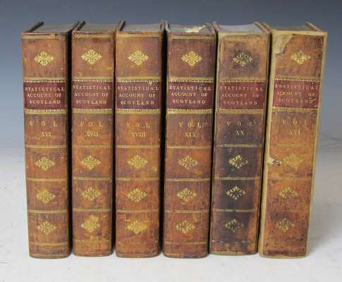 The statistical account of Scotland... Edinburgh: printed by William Creech, 1791-1799. 8vo, 21 volumes, contemporary calf gilt, rubbed at backstrips, several volumes rebacked using original backstrips, 19th century ink inscription to endpaper of volume one (21)