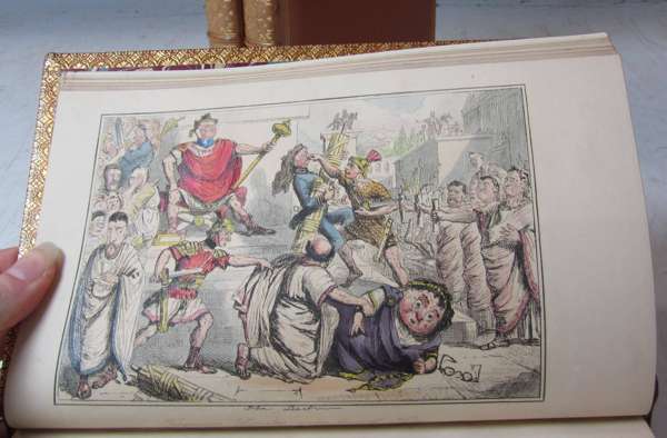The comic history of England. London, 1847-1848. First edition, 8vo, 2 volumes, 30 hand coloured plates by John Leech, contemporary calf gilt by Wallis, red and green labels, a.e.g., some slight fading to backstrips; [Idem] The comic history of Rome. London, 1851. 8vo, 10 hand coloured plates by John Leech, contemporary calf gilt by Wallis [uniform with previous], red and green labels, a.e.g., some slight fading to backstrip (3)