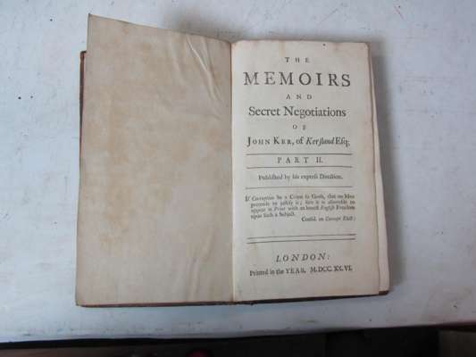 The memoirs of John Ker, of Kersland in North Britain... London, 1726. 8vo, 3 volumes, contemporary calf, worn, backstrips split, boards loose; [Idem] Kerr of Kerrisland. [No place, c.1876]. 8vo, contemporary half morocco gilt; and another (5)