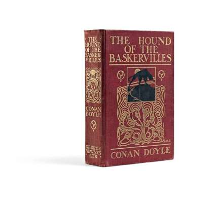 The hound of the Baskervilles. London: George Newnes, 1902. First edition, 8vo, 16 plates by Sidney Paget [some loose], original red cloth gilt, rubbing to head and tail of backstrip, inner hinges weak, lacking dustwrapper