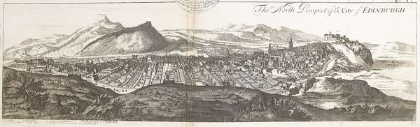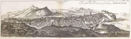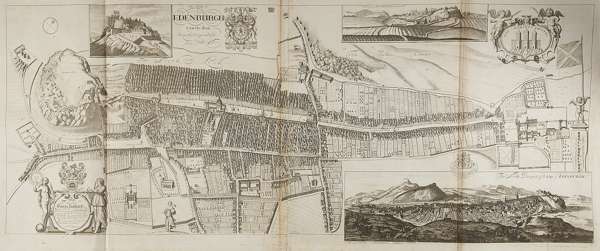 Theatrum Scotiae, containing the prospects of their majesties' castles and palaces. Edinburgh: for John Thomson, 1814. New edition, folio, 69 plates [including two folding plans of Edinburgh by De Wit], contemporary cloth backed boards, worn, backstrip spilt, front plan loose, some foxing to plates