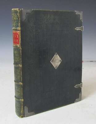 The Holy Bible containing the old testament... Cambridge: printed by John Field, 1668. 4to, engraved title [trimmed and laid down], 19th century green pigskin, red label gilt, a.e.g., marble endpapers, silver clasps, corner pieces and panel engraved "AS Coulter Morris", later endpapers, bookplate