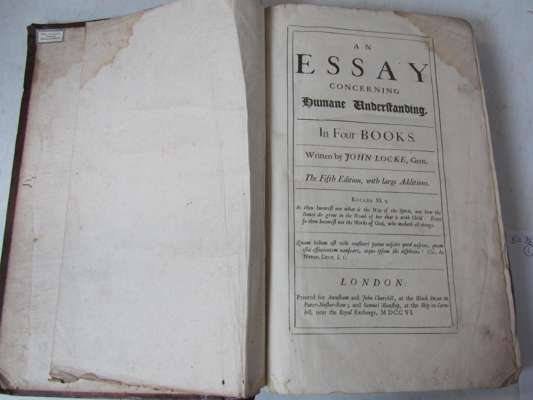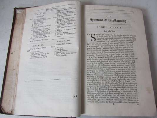 An essay concerning humane understanding. London: A. & J. Churchill, 1706. Fifth edition, folio, contemporary panelled calf, dampstain to upper corner of preliminary leaves only, neatly rebacked, red morocco label