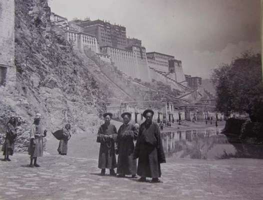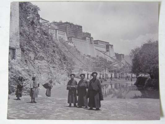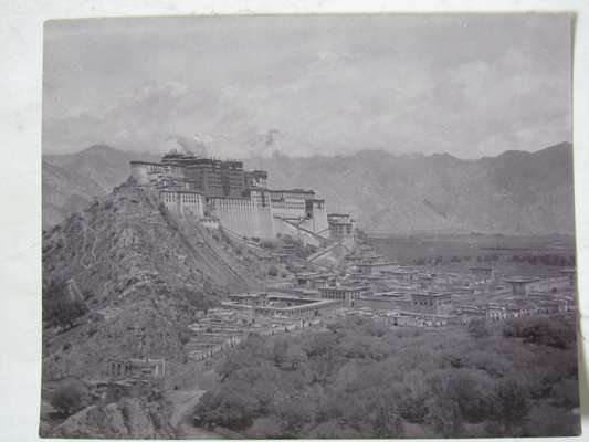 41) The first arrival at Lhasa. The Potola on its hill in the background.