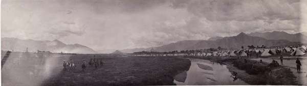 54) British camp on plan at Lhasa with the Potola and Medical college in distance. [Panorama]