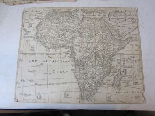 Americae nova descriptio... Paris, 1663. Approx. 33.5 by 44cm, uncoloured, trimmed at edges, chipping and creasing, some foxing; Chetwind, Philip Africae descriptio nova impensis... London, 1666. Approx. 33.5 by 43cm, uncoloured, trimmed and chipped at edges, some foxing; Russell, J. Ireland... London, 1802. Approx. 50 by 36cm, uncoloured, tear to right edge, some foxing; Scotland London, 1816. Approx. 49 by 39cm, uncoloured, chipping to edges, some foxing; and 3 other maps (7)