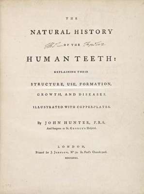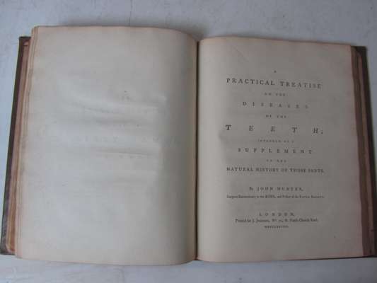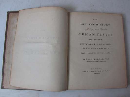 Note: First editions of both works. John Hunter's classic work, bound with his later Diseases of the teeth. The natural history of the human teeth revolutionised the practice of dentistry and provided a basis for later dental research. Hunter introduced the classes cuspids, bicuspids, molars and incisors; he also devised appliances for the correction of malocclusion. Hunter also includes instructions for the operation of tooth transplantation. An excellent copy. Garrison & Morton 3675, 3676; Menzies Campbell, 22, 28. Crowley, 1521. Poletti, p.105. Weinberger, p.70.