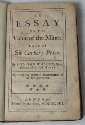 "Rich lead and silver mines were discovered on the estate of Sir Carbery Price in Wales in 1690 and Mr Waller became manager of the works. After Price's death, the mines were taken over by the Company of Mine-Adventurers which led to considerable dissension as Waller's later writings disclose." (Hoover Collection)