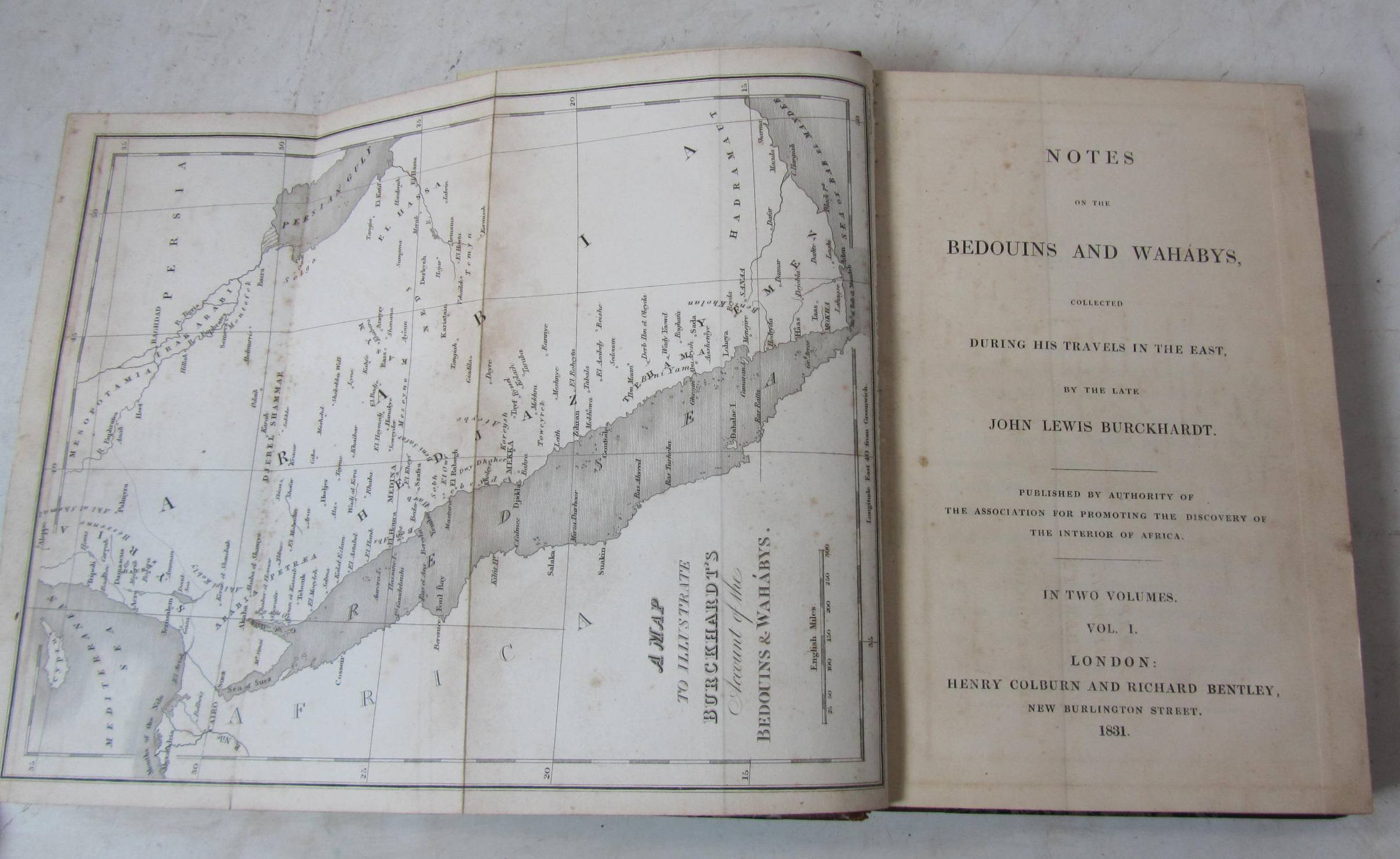 Notes on the Bedouins and Wahabys. London: H. Colburn & R. Bentley, 1831. 2 volumes, 8vo, folding engraved map, contemporary half calf, slightly spotted