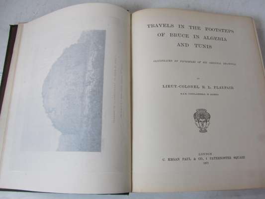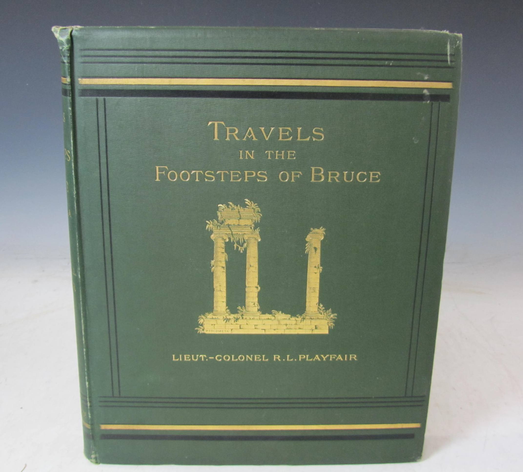 Travels in the footsteps of Bruce in Algeria and Tunis. London: C. Kegan Paul, 1877. First edition, 4to, folding map, 29 plates, original green pictorial cloth gilt