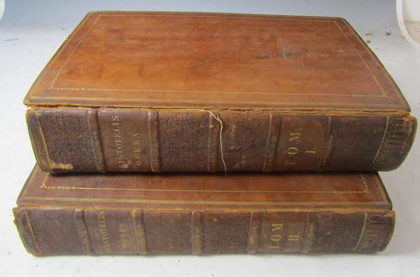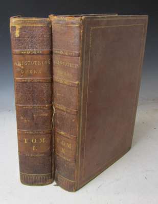 Opera omnia quae extant, Graecè & Latinè. edited by Guillaume du Val. Paris: Typis Regis [i.e. Robert Estienne III], 2 volumes, folio, titles printed in red and black with engraved vignette, parallel text in Greek and Latin, folding table, library stamp to title versos and several other leaves, nineteenth century diced calf by George Mullen, Bookbinders, Dublin with their ticket, occasional minor discolouration, volume 1 cover detached, one hinge weak