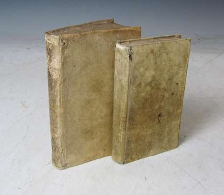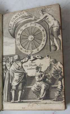 Pratique curieuse ou les oracles des sibylles. The Hague, 1694. 12mo, engraved frontispiece, title in red and black, contemporary vellum, some worn to last few leaves [no text loss] and another volume on oracles (2)