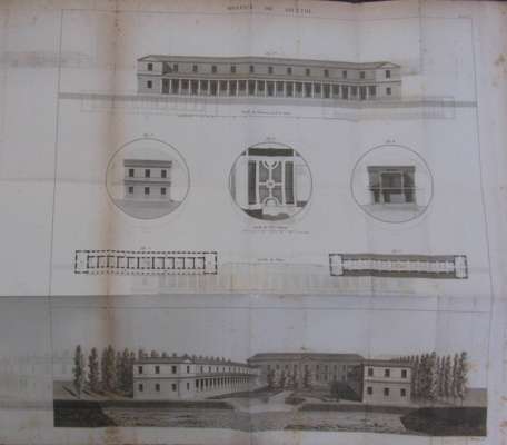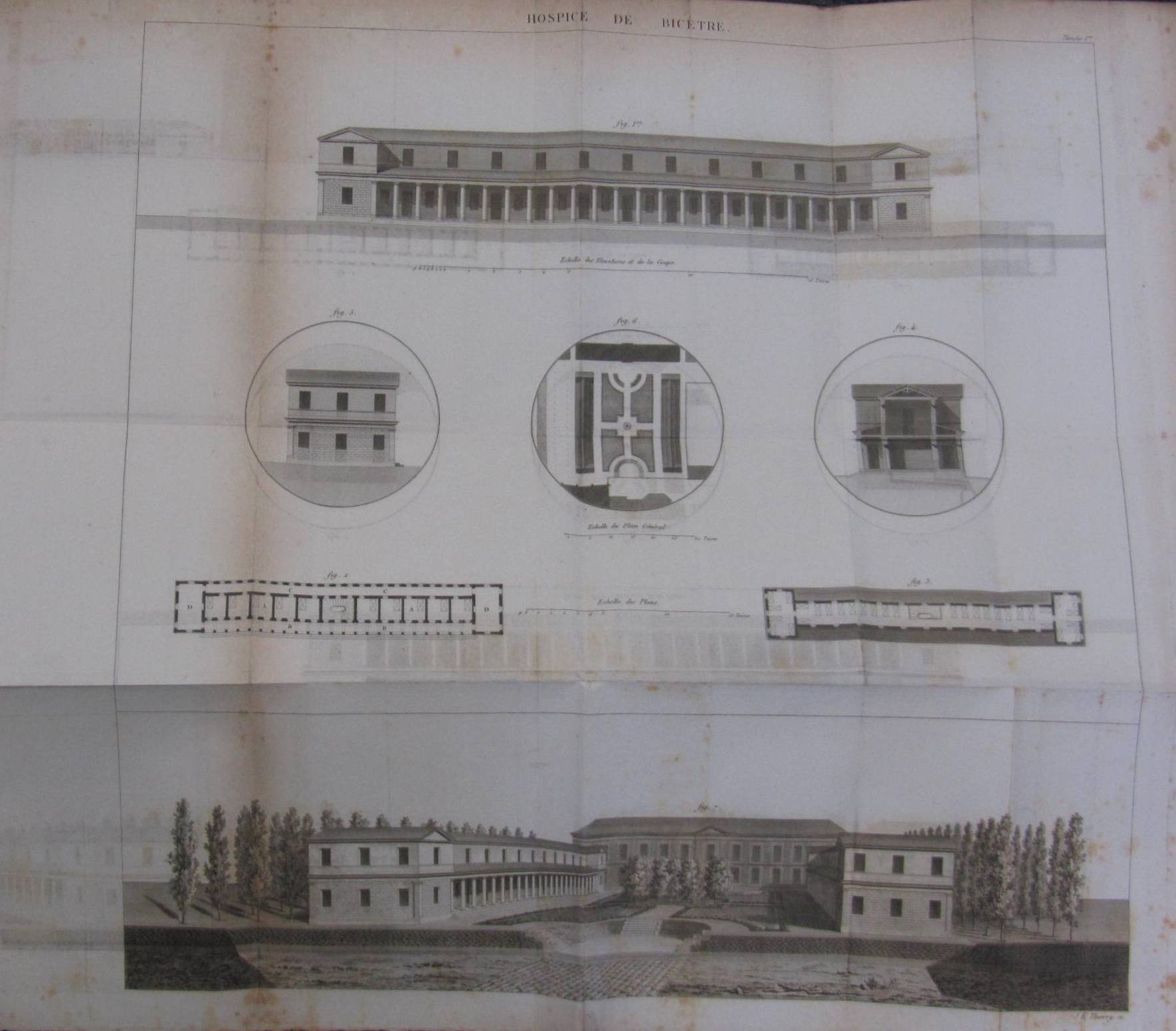 Rapport fait au conseil général des hospices civils de Paris. Paris: Huzard, 1823. 4to, 2 large folding plates, bound with others, red quarter calf, spotting, joint split; Rapports au conseil général des hospices. Paris, an 11. 4to, original boards, uncut, worn; Rapport fait au conseil général des hospices. Paris: Huzard, 1816. 4to, wrappers, uncut, worn; Code administratif des hopitaux civils, hospices et secours a domicile de la ville de Paris. Paris: Huzard, 1824. 2 volumes in one 4to, half calf, boards detached, lacks spine; Dumortier, B.C. Recherches sur la structure comparée.. des animaux et des végétaux. Brussels, 1832. 4to, 2 plates, wrappers, uncut, wrappers detached (quantity)