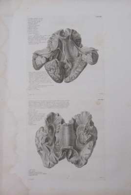 Icones anatomicae. Neurologia. [Göttingen : Dieterich, 1826-1841], 3 fascicles in one volume: Fascicle 1) 34 engraved plates, ?lacking text leaves; Fascicle 2) 11 plates, some hand-coloured, each with accompagnying text leaf; Fascicle 3) 9 engraved plates, most hand-coloured, each with accompanying text leaf; and Icones Angiologicae, Fascicle 2) 29 lithographed plates, most hand-coloured, each with accompanying text leaf, contempoarary half calf, some dampstaining and spotting, worn; sold not subject to return