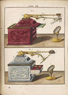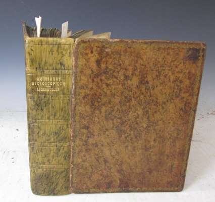 Amusement microcopique, tans pour l'esprit, que pour les yeux. Nuremberg: Adam Wolfgang Winterschmidt, 1764-68. 3 volumes and supplement in one, 4to, [viii], 126, iv]; 138, [ii]; [viii], 118, [ii]; 24; hand-coloured engraved frontispiece and 152 engraved plates, 151 hand-coloured (including 2 in supplement), library stamp to frontispiece, title and several text leaves, library blindstamp to some plates, small adhesion to plate 99 and text opposite with slight loss, contemporary calf, neatly rebacked, corners repaired, a few small spots or stains