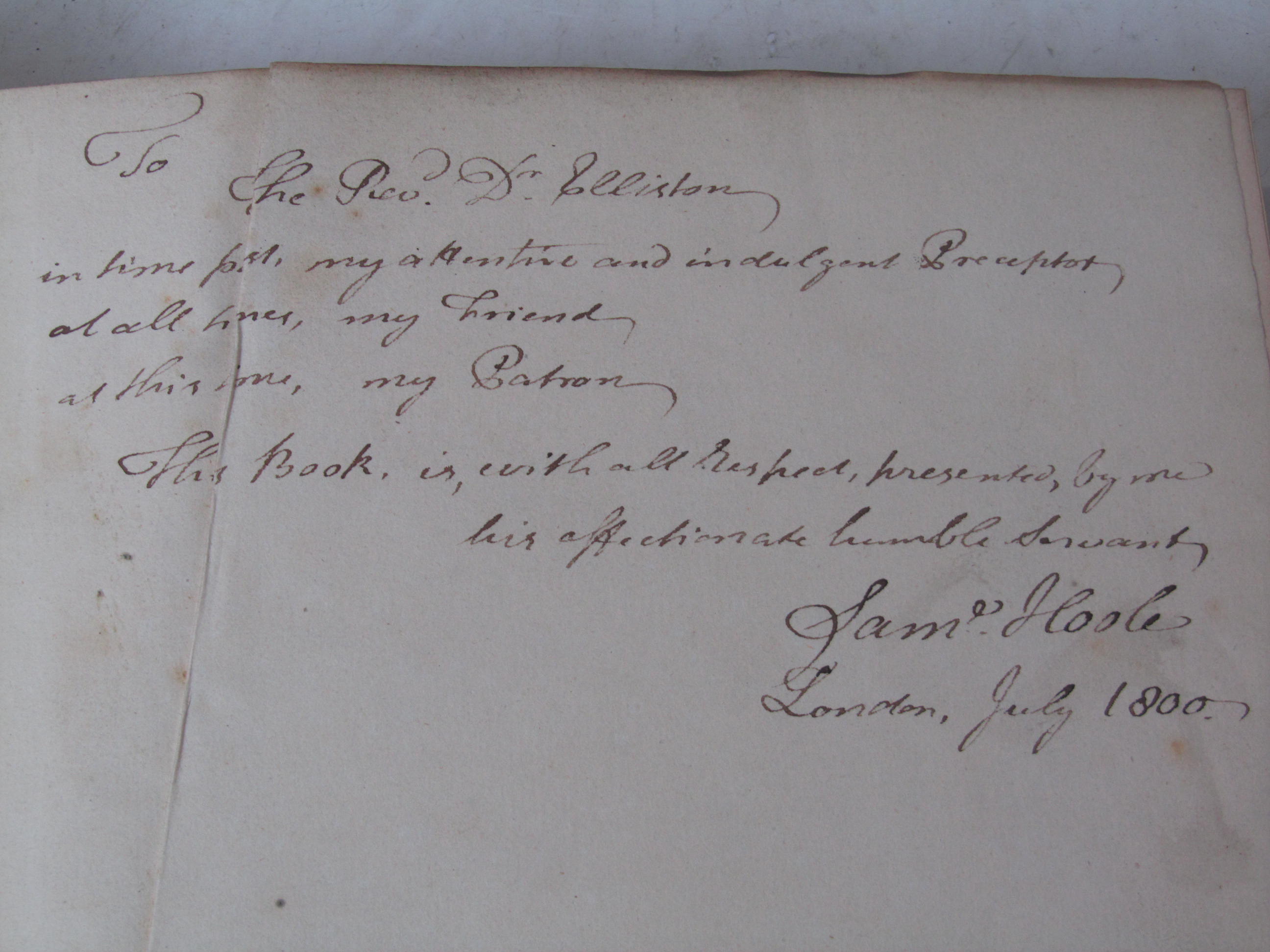Leeuwenhoek, Anthony van - Samuel Hoole, presentation copy