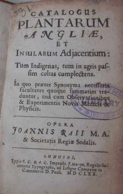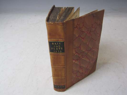 Catalogus plantarum Angliae et insularum adjacentium. London: J. Martyn, 1670. 12mo, [11 l.], 358, [1], errata leaf at end, library stamp on title, early twentieth century half calf, lacking initial blank, a few sections working loose, errata leaf laid down, some dust-soiling and spotting, library stamp on title