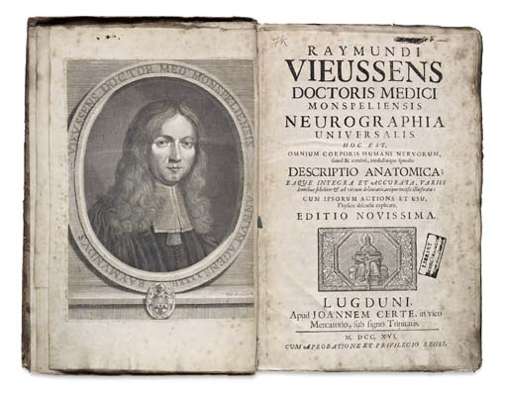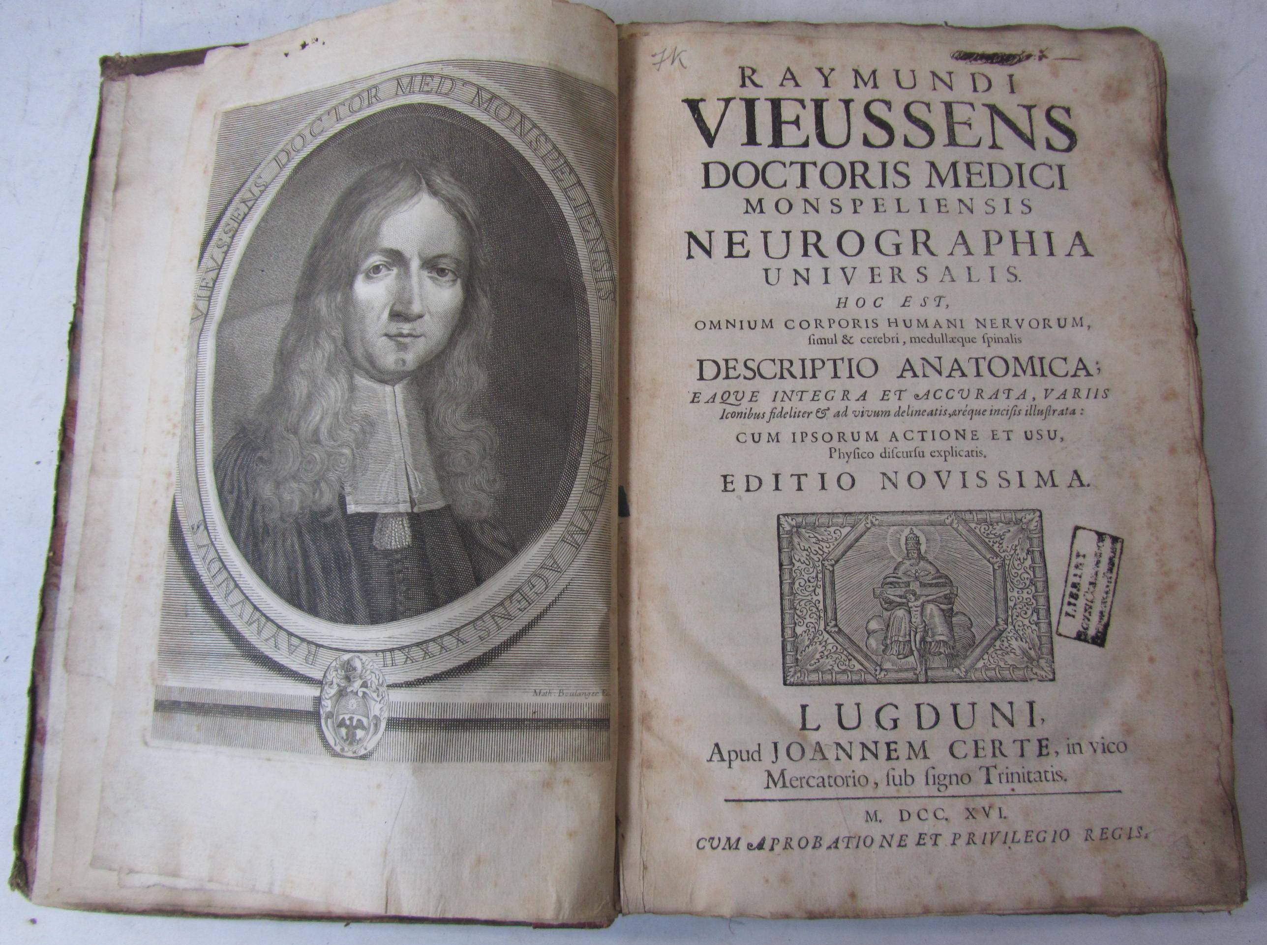 Neurographia universalis, hoc est, omnium corporis humani nervorum. Lyons: J. Certe, 1716. Folio, [16], 252, [2]; engraved portrait, half-title, 30 numbered engravings consisting of 8 numbered engravings in the text and 22 engraved plates, some folding, one double-page, errata leaf at end, contemporary quarter calf, uncut, some spotting, corner of half-title torn away, several library stamps, rubbed & soiled