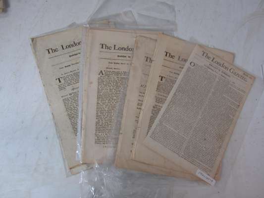 The London Gazette. London, 1669-1805. 8 issues, 5 issues from 1745, approx. 30 by 20cm; London The Post Man and the Historical Account. London, 1699. Approx. 32 by 20cm, browned; London The Observator. London, 1683. 2 issues, approx. 36 by 21cm; London The London and Country Journal. London, 1741. Approx. 25 by 20cm; London The Examiner. London, 1713. Approx. 33 by 21cm; London The Rehearsal. London, 1706. Approx. 35 by 20cm; Gentleman's Magazine April & September 1746. 8vo, 2 volumes, disbound; and a selection of others (22)