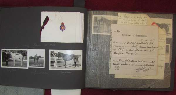 Hunting Diaries: Ireland and the Cotswolds: 15 hunting diaries, written mainly in old army books, covering the seasons 1904-1934 kept by Mary Macdonald. Often hunting four days a week, the notes cover outings with numerous hunts including Vale of the White Horse (Bathurst), Heythrop, Old Berkshire, East Hambledon, West Hambledon, Garth, S Berks, Vine, Cotswold, Kildare, Carlow, Albrighton, Cheshire, Beaufort, Westmeath, Galway, Queen's County, Grove, Lady Crave's, Belvoir, Rufford, and Eat Kilkenny; A 1930's photograph album of Lt. J.R.G. Macdonald, 1st Royal Fusiliers centred around his polo ponies in India, photographs of ponies, with details of matches