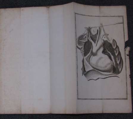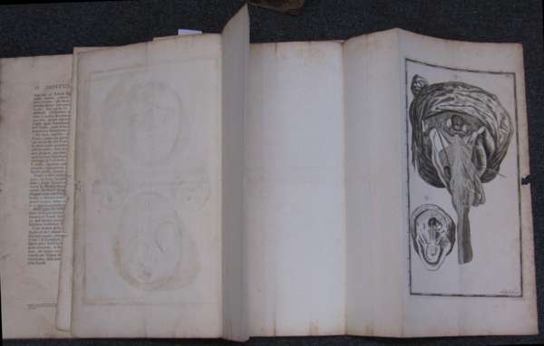 Impetus primi anatomici ex lustratis cadaveribus nati. Leiden: sumptibus auctoris, apud Petrum van der Aa, 1721. Large folio, engraved title vignette, 6 folding engraved plates, contemporary half calf, outer margin of text and five plates with marginal damage, plate 4 with slight loss to engraved border, library stamp to title, worn, covers detached