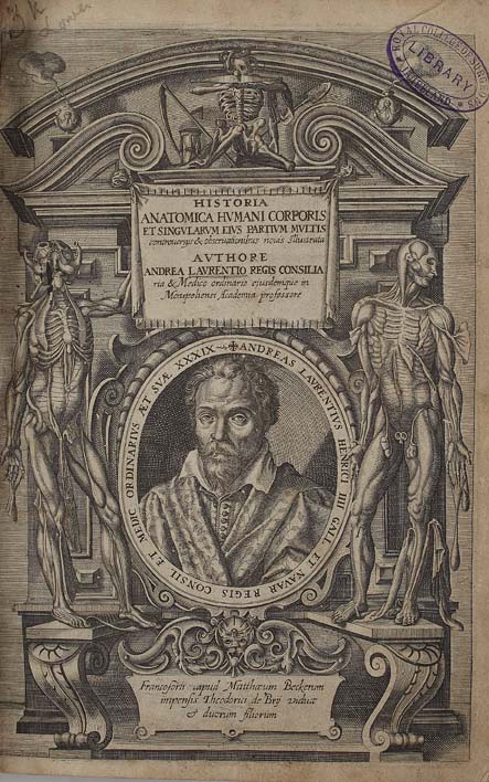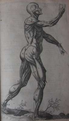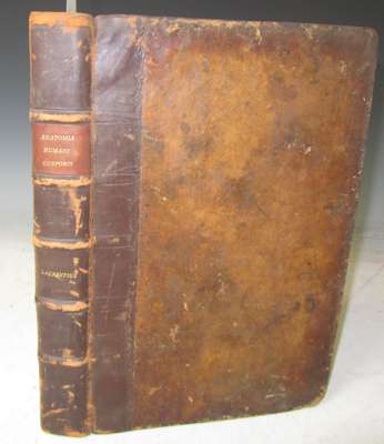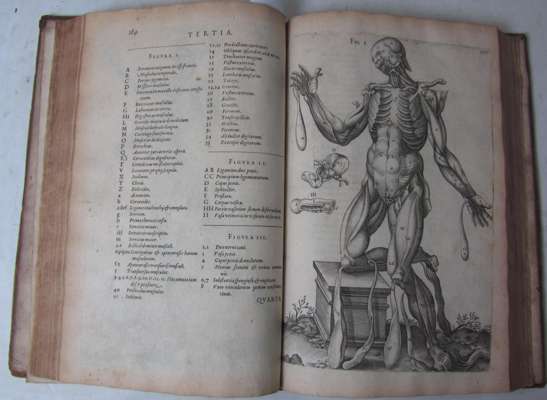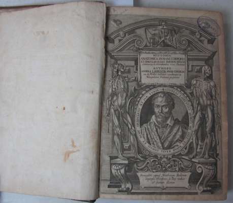 Historia anatomica humani corporis et singularum eius partium multis. Frankfurt: Matthew Becker, [1599]. 4to, [10] l., 442, [15] l. (last blank), engraved title page, full-page engraved illustrations in the text, contemporary calf, rebacked, corners worn, lacking BB4, apparently lacking preliminary leaves *2 and *3, lower blank corner of **2 torn away